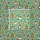 Pattern of cute cats and other critters on a green background.