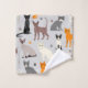 White cat, black cat, tabby cat, Persian cat, Siamese cat, tuxedo cat with paw prints on a light coloured background.