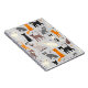 White cat, black cat, tabby cat, Persian cat, Siamese cat, tuxedo cat with paw prints on a light coloured background.