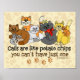 Cats are like potato chips, you can't have just one. Funny cat saying with 10 different coloured cats graphic. With cat paw print in beige / brown background. Great for cat lovers. Do they call you the crazy cat lady?