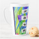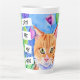 Whimsical folk art watercolor orange cat and blue and purple flowers latte mug. Quote, "Cats are my Tribe." generativecontent