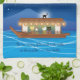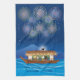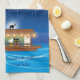 Cats Delighting in Fireworks Aboard a Houseboat Kitchen Towel