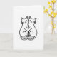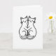The front design shows two stylized cats cuddling close on a white background, their bodies mirrored in a neat, balanced pose 🥰. Each cat is drawn with smooth black lines, tiny dotted eyes, and small curved smiles that make their closeness feel gentle and sweet. Their paws and tails tuck in toward each other, and the way their heads lean together suggests a quiet, trusting bond ❤️. Between their bodies, the open space forms a clear heart shape that stands out even without any extra color. The layout stays simple and airy, keeping your attention on the embrace and the heart in the center. A short Valentine’s greeting sits near the top in black lettering, with a smaller line of text placed below the illustration in a lighter gray. Fine whiskers and a few delicate line details around the cheeks add charm while keeping the drawing minimal. The heart-shaped gap between them is crisp and centered, framed by the curved lines of their backs and tails.