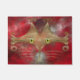 A stylized cat face made of glowing gold curves and curlicues, with wide green-gold eyes, against a red fractal background.