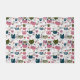 Cats faces muted warm green teal pink pattern doormat
