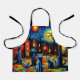 A.I. created print of a group of stylized blue cats sit among vibrantly colored landscape of whimsical houses with glowing windows as they gaze upward watching a starry night sky with swirling patterns and a bright full moon.