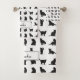 Celebrate cats with this adorable custom cat pattern bathroom bath towel set. Towel set features a pattern of adorable cats in black silhouette. Cats are relaxing, playing, jumping, and more. Add your first name for a personal touch.