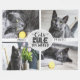 Lovely fleece blanket featuring four customizable photographs with the wording "Cats rule the world" in the middle, with black fun lettering decorated with whiskers, a tiny mouse, a paw, and cat scratches on the letter of the world RULE. The white band in the middle is personalizable with your cats' names (or delete the default text to leave it blank).