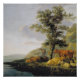 Cattle near a River . Aelbert Cuyp. Classic landscape in warm colours. A milkmaid girl stands next to a red cow. Mountains in the background. There are clouds in the sky Reproduction of famous works of art images in the public domain.