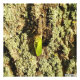Photo of a bright green leafhopper captured buy a camouflaged spider. October 2019.