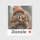 The design conveys a sense of coziness, warmth, and perhaps a touch of whimsy, making the squirrel look ready for colder weather as it snacks away contentedly on autumns surplus supply of nutrition. The background is softly blurred, with muted greens and browns.