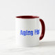 A bit of humor for your morning coffee with this Caution Aging Hippy mug.