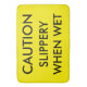 Caution. Slippery when wet sign on a bath mat. Also works as a safety warning sign.
