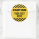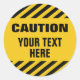 Caution stripes with any text round classic round sticker