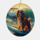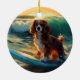 Cavalier King Beach Surfing Painting Ceramic Ornament