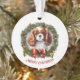 Mignon ornement de Noël avec adorable Blenheim Cavalier le roi Charles chiot spaniel dans une couronne de Noël. Personnalisez facilement le texte ou laissez-le vide - Kate Eden Art