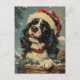 Capture the festive spirit with our Christmas card design featuring a charming Cavalier King Charles Spaniel adorned with a Santa hat. The joyful expression on the pup's face and the holiday-themed accessory create a heartwarming scene, perfect for spreading Christmas cheer to all your loved ones.