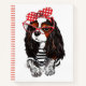 This design features a Cavalier King Charles Spaniel dog dressed in a striped cardigan, red sunglasses and with a polka dot headband.