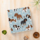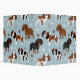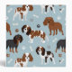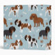 Cute Cavalier King Charles Spaniel with black, brown and white coats with scattered dog bones and pawprints pattern.