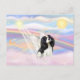 A tri coloured Cavalier King Charles Spanieltries out their wings among heaven's fluffy clouds before they are free to enter Rainbow Bridge where angels and friends await.l