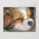 An adorable photograph of a Cavalier King Charles Spaniel very young puppy sleeping on a blanket