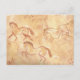 Cave drawing watercolor painting depicting 3 horses galloping, jumping and bucking.