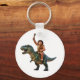 Caveman Riding Dinosaur Cartoon Image Keychain