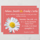 Cette faire-part de mariage est ornée d'un arrière - plan rouge cayenne chaleureux qui est magnifique avec la marguerite simple qui, je pense toujours, est une grande touche mariage florale car simple, chic et il y a juste quelque chose de romantique avec l'humble marguerite qui évoque des idées de faire des chaînes de marguerite ensemble sans aucune autre inquiétude!