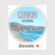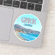 Display the vibrant aqua blue Pacific Ocean, below the rose-coloured mountains of sleepy surf town Cayucos on the Central Coast of California, USA on a sticker as a memento of one of America's greatest sites!
