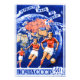 Reproduction of a postage stamp from the Soviet Union from 1958, featuring the Soviet football team (soccer). Depicts football players against a map of the Soviet Union.