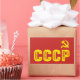 The CCCP (Russian translation for USSR) and the hammer and sickle made in a retro and vintage style for the communist party.