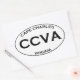 This Euro style oval sticker includes the letters "CCVA" to denote Cape Charles Virginia. This design includes town-state subtitles above and below. Located on the Eastern Shore of Virginia, Cape Charles is a popular destination for beach lovers, fishermen, and nature enthusiasts.