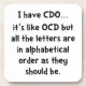 �I have CDO it�s like OCD but all the letters are in alphabetical order as they should be.� Check out this funny custom design on tees, shirts, mugs, pyjamas, gifts and other apparel.