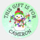 Ce cadeau est pour le nom étiquette mignon Snowman