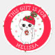 Un mignon chat dessiné à la main géant tenant un cadeau, Ce cadeau est pour... à et de Noël autocollant. Ajoutez un nom dans la zone de personnalisation.