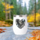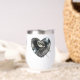 Belle bouteille d'eau conçue pour un mariage. Cette bouteille d'eau a une image imprimée d'une peinture acrylique. La peinture acrylique a deux bandes mariages en argent dans un coeur en forme de cristal. Grand cadeau pour marié et marié.