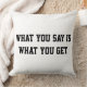 Ce que vous dites est ce que vous obtenez! révèle la puissance des mots et de la manifestation lorsque nous proclamons en accord ce que la Parole de Dieu déclare. Diffusez la parole de grandeur avec les autres. Mettez ce coussin sur votre canapé pour la motivation quotidienne, allumez des conversations passionnantes sur la façon dont les mots qui sortent de notre bouche déterminent ce que nous recevons.