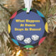 Coloré et amusant ornement Bunco pour votre joueur Bunco préféré. Ce Qui Se Passe À Bunco Séjourne À Bunco drôle devise. Comprend trois dés de Bunco de chance sur ce design de couleur.