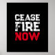 Cease Fire Now white red black distressed grunge typography anti war poster / sign.