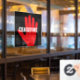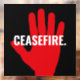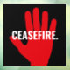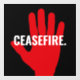 Ceasefire red white black hand bold custom text anti war window cling sign.