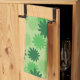 Bright green kitchen towel with a pattern of cecropia leaves. These leaves have a nice shape and are one of the favourite foods for a sloth.
