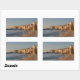 Rectangular photo sticker with the typical architecture of the old houses built on the beach of the Mediterranean Sea in the town of Cefalu, on the Island of Sicily in Italy.