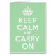 Celadon vert et blanc "Keep Calm and Carry On" version moderne de l'affiche classique.