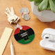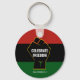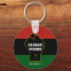 Stylish CELEBRATE FREEDOM Christian Juneteenth keychain, showing black power fist motif with a yellow drop shadow, set against red, black and green panels (colours of the PAN AFRICAN FLAG). The main text of this Juneteenth keychain says CELEBRATE FREEDOM and is based on the Bible Scripture reference from Galatians 5:1 - IT WAS FOR FREEDOM CHRIST HAS SET US FREE. Both sets of text are CUSTOMIZABLE so you can replace the text with your name or other preferred wording. This Black History Month keychain would make an ideal gift for Juneteenth, Christmas, Birthdays and throughout the year, especially at African American Caribbean celebrations and events of Black cultural awareness.