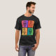 This eye-catching tee is a colourful masterpiece, featuring four unique squares of artistry. In the purple square, you'll find a captivating Day of the Dead sugar skull silhouette, while the red square boasts the intricate beauty of a marigold flower. The green square showcases another mesmerizing sugar skull, and the yellow square is adorned with a different marigold drawing.