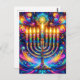 Celebrate the spirit of Hanukkah, captured in a mesmerizing display of a menorah with its lights dancing in psychedelic hues, a cosmic celebration of light and joy. 🕎✨🌈
