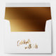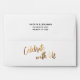 On the outside flap are placeholders for your names and address. On the he lower part of the back I've placed a gold graphic featuring a casual handwriting font that reads "Celebrate with Us". The inside flap has been covered in a faux-metallic gold ombre image. Designed to match several elegant wedding-themed cards, there are other envelope options to consider as well.
