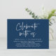 Elegantly announce your happily ever after with our modern navy blue themed wedding elopement celebration invitation card, "Celebrate with us". Tailored for couples continuing their love story, this invitation strikes a perfect balance of sophistication and charm, setting the scene for an unforgettable event. Featuring a modern contemporary script design, it adds a touch of timeless grace to your special day. Designed by the talented TeeshaDerrick, this invitation is a stylish expression of your enduring love.