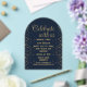 Invite your guests to your New Year's Eve wedding celebration with these simply glamourous gold and navy blue festive acrylic arch invitations. A modern, minimalist handwritten script font—'Celebrate with Us' heading. Faux gold foil star effect 5x7 template. Fill in with your details to personalize this design. Please reach out for assistance with customization.