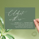 Mark the beginning of your forever with elegance using our romantic contemporary rustic sage green theme wedding elopement happily ever after lunch, brunch, reception dinner party celebration invitation card, "Celebrate with us". Perfect for couples extending their joyous occasion, this invitation exudes sophistication with a hint of playfulness, setting the stage for a memorable event. Adorned with a timeless modern script design theme, it adds a touch of refined charm to your festivities. Crafted by TeeshaDerrick, this invitation promises to beautifully capture your love story.